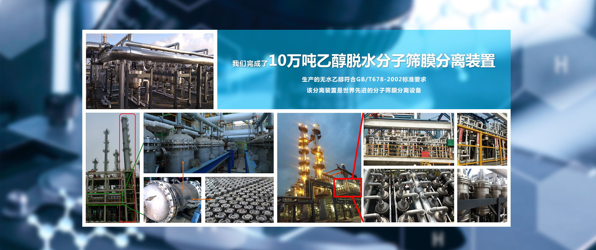 大連海斯特科技有限公司在索普集團(tuán)醋酸加氫制乙醇項(xiàng)目中完成3萬噸/年乙醇分子篩膜脫水項(xiàng)目。
